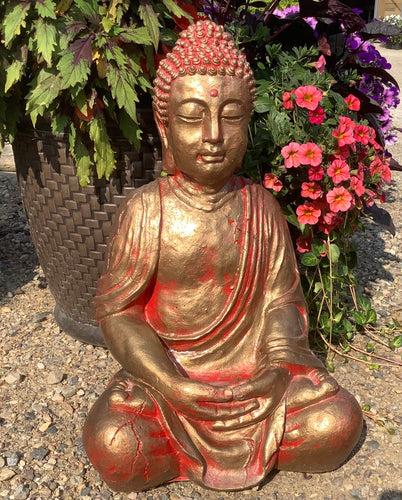 Large Meditating Buddha Statue - Gold/Red